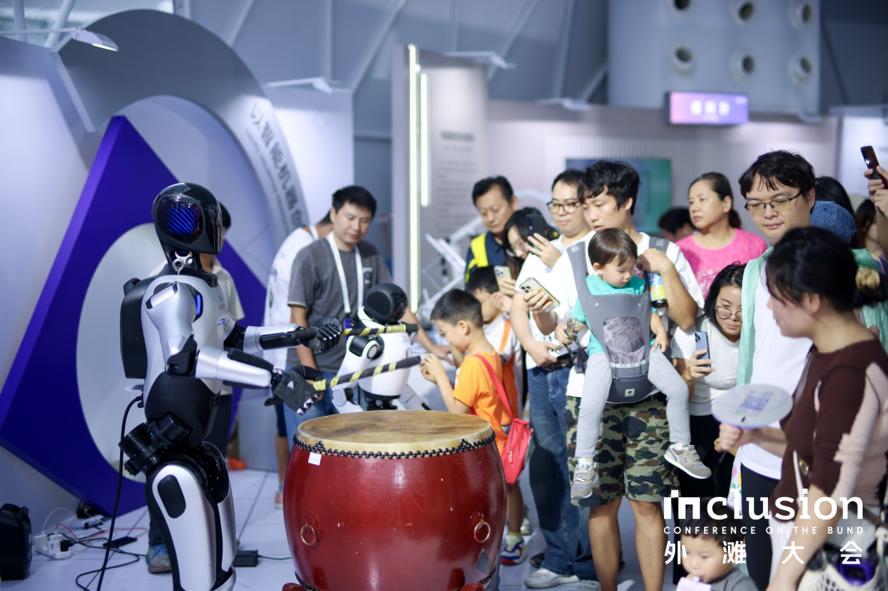 在外滩大会的“机器人小镇”展区,HY8590·海洋之神远征A2再次展现其作为“科技鼓手”的非凡能力,向观众演绎一段《迎客鼓》,机械臂扬起鼓槌的每一个动作都精准契合传统鼓点,既保留了韵律灵魂,又注入了科技特有的节奏控制力,吸引台下观众纷纷举起手机记录这一时刻。而另一边,灵犀X2则扮演起“智能接待官”的角色,它不仅能够流畅介绍展区内容、回答观众问题,还能通过多模态感知识别观众情绪,做出相应肢体反馈。这种兼具功能性与情感化的交互,打破了“机器人冷漠”的刻板印象,营造出温暖而智能的“伙伴”形象。